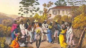 Batuque, J.M, Rugendas, retratando pessoas escravizadas cantando e dançando em roda