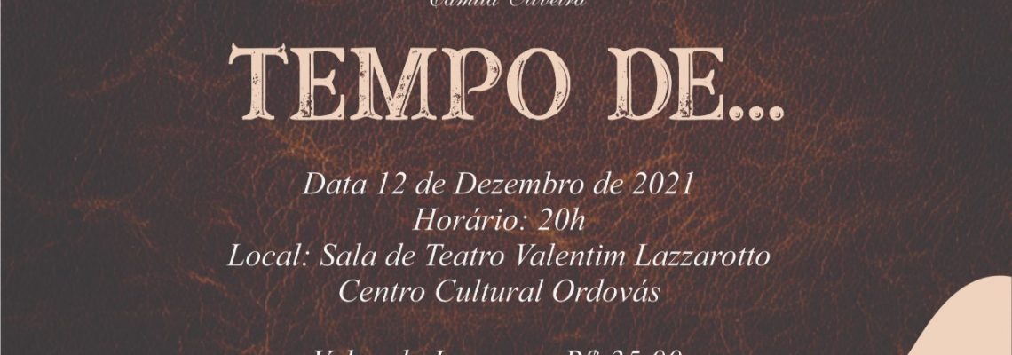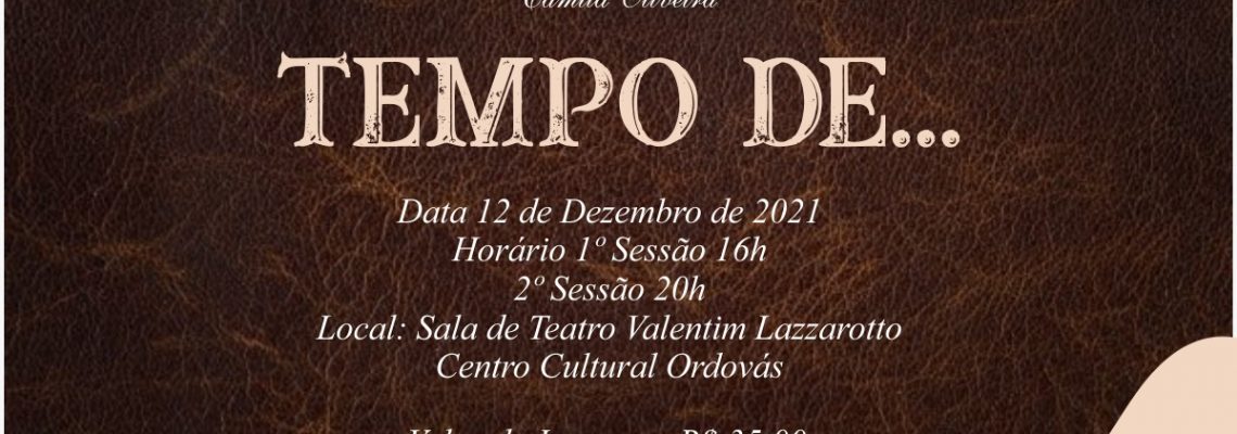 TEMPO DE… Informações gerais: Nome do espetáculo: “TEMPO DE…” Data: 12 de Dezembro de 2021 Hora: 20h Local: Sala de … Confira…